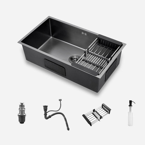 The Stainless Steel Kitchen Sink is the perfect addition to any kitchen. Its commercial-grade finish and extra-tough construction make it withstand any wear and tear, while its easy-to-clean design keeps it looking new for years. The sink also features a rear-set drain and engineered grooves that allow for complete water drainage, as well as extra-thick rubber sound dampening pads that cover 80% of the sink base to absorb noise and vibration. Plus, with its gently rounded corners, the sink is easy to clean and takes up less space in your kitchen.